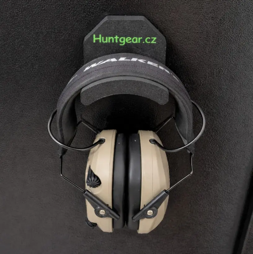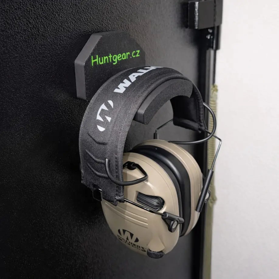 Jednoduchý a funkční design šetří místo a nabízí praktické uložení sluchátek. Ideální pro sportovní střelce, myslivce i profesionály vyžadující kvalitní a estetické řešení pro uložení příslušenství.