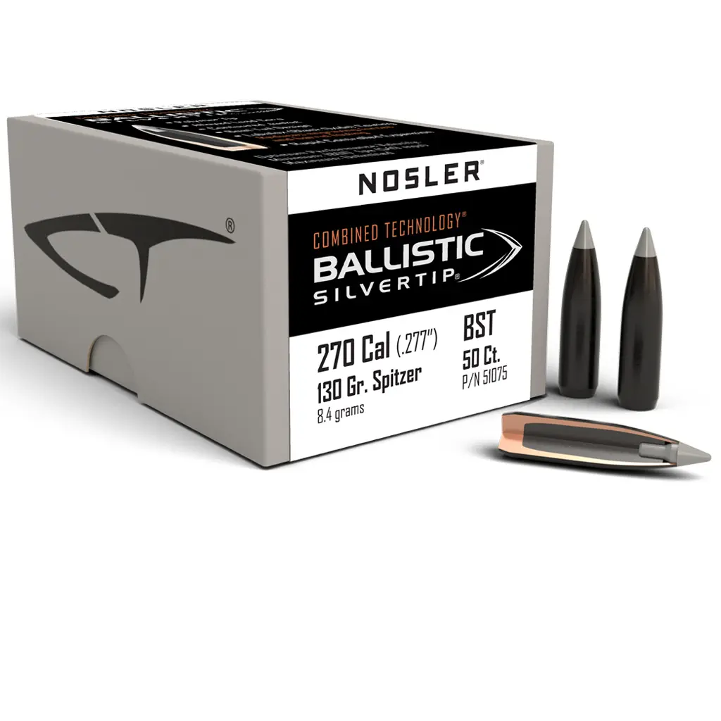 Střely Nosler Ballistic Silvertip .270 cal, dia .277, 130grs (8,4g). SKU: 51075