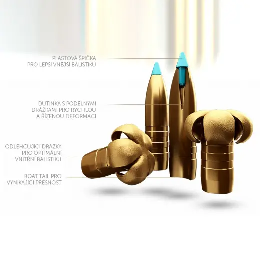 Plastová špička zajišťuje řízenou deformaci v jakékoliv vzdálenosti.