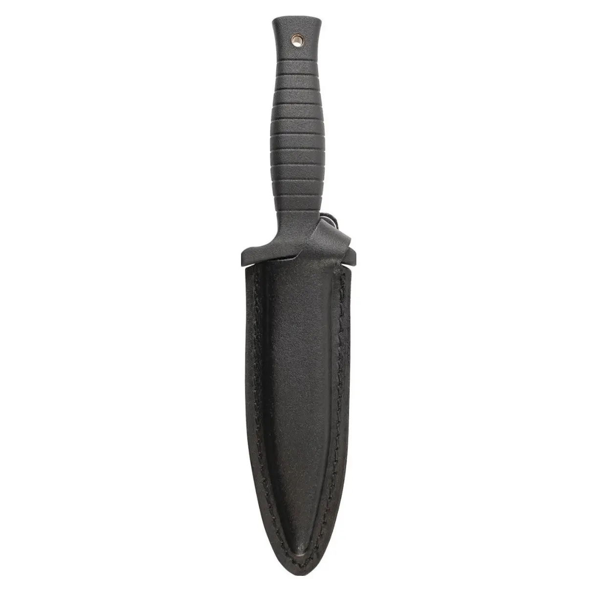 Taktický nůž/dýka v koženém pouzdře pro nošení na opasku nebo v botě. Pevná čepel Spear Point, pogumovaná rukojeť. Délka nože 23 cm, čepel 12 cm. Ideální pro EDC i skryté nošení.